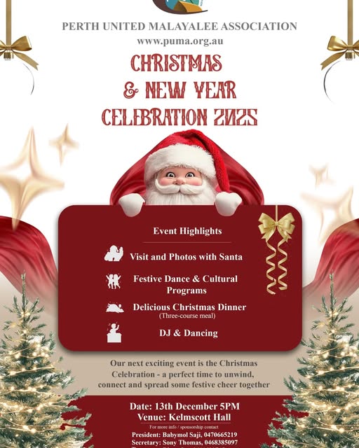 Perth United Malayalee Association (PUMA) is a cultural organisation established in 2013 by the Malayalee community living in Perth and surrounding regions of Western Australia. PUMA is a non-profit, non-political, and non-religious organisation dedicated to fostering cultural harmony, social connection, and community wellbeing through a